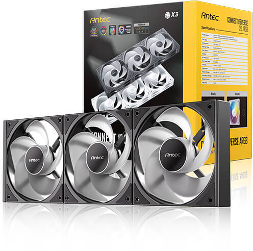 De Antec Connect 120 Reverse ARGB-koelers (set van 3) bieden krachtige koeling en stijlvolle verlichting voor je pc. Met een rotatiesnelheid van 1800 RPM en een geluidsniveau van 27,2 dB, leveren deze ventilatoren een luchtstroom van 43,2 CFM en een luchtdruk van 1,29 mmH2O. De zwarte reverse fans zijn uitgerust met ARGB-verlichting en eenvoudig aan te sluiten via een 4-pin PWM en 3-pin ARGB-aansluiting, voor een efficiënte en visueel aantrekkelijke oplossing.
