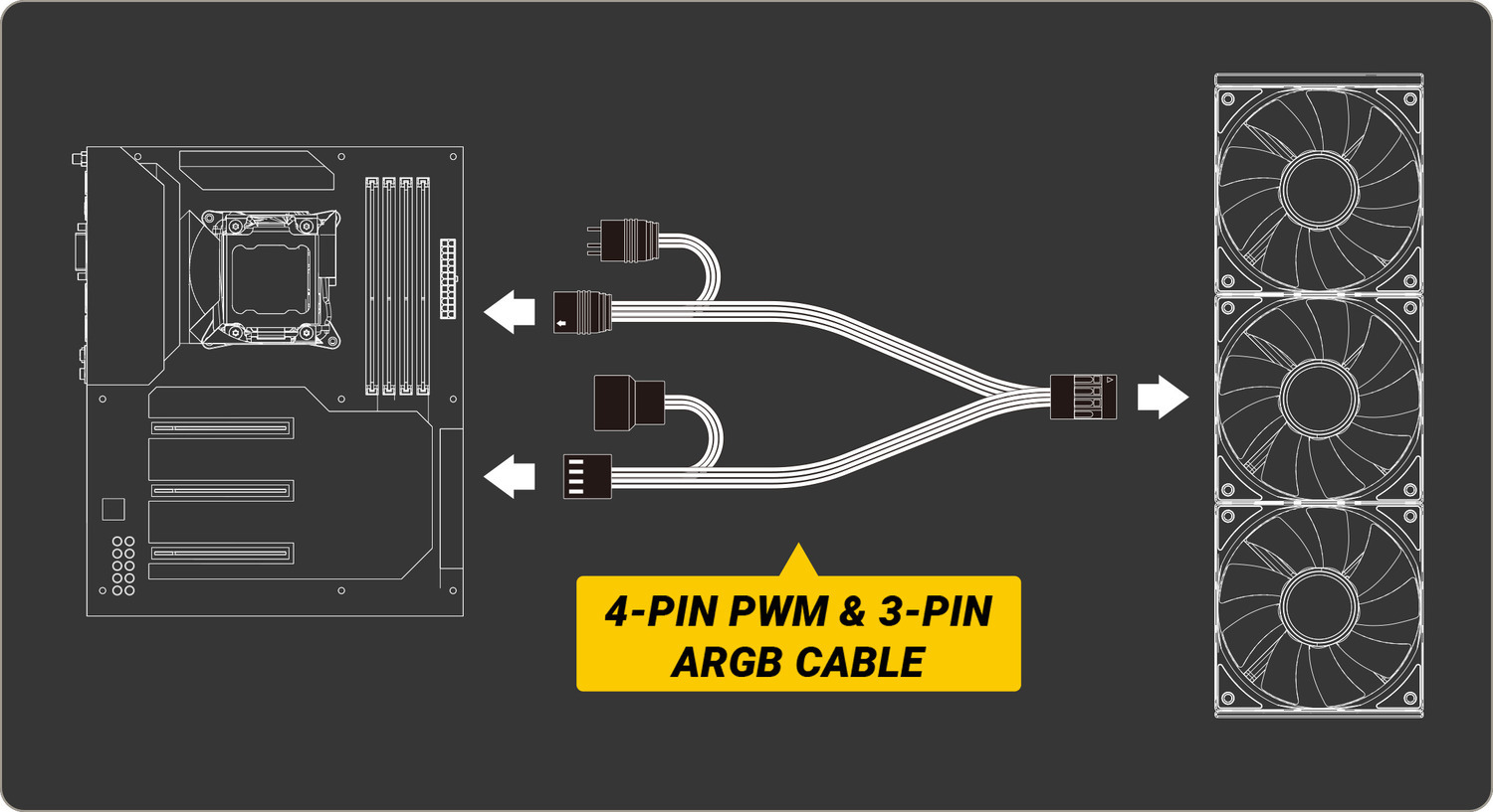 Klik de fans aan elkaar en ga met 1 enkele kabel naar uw moederbord