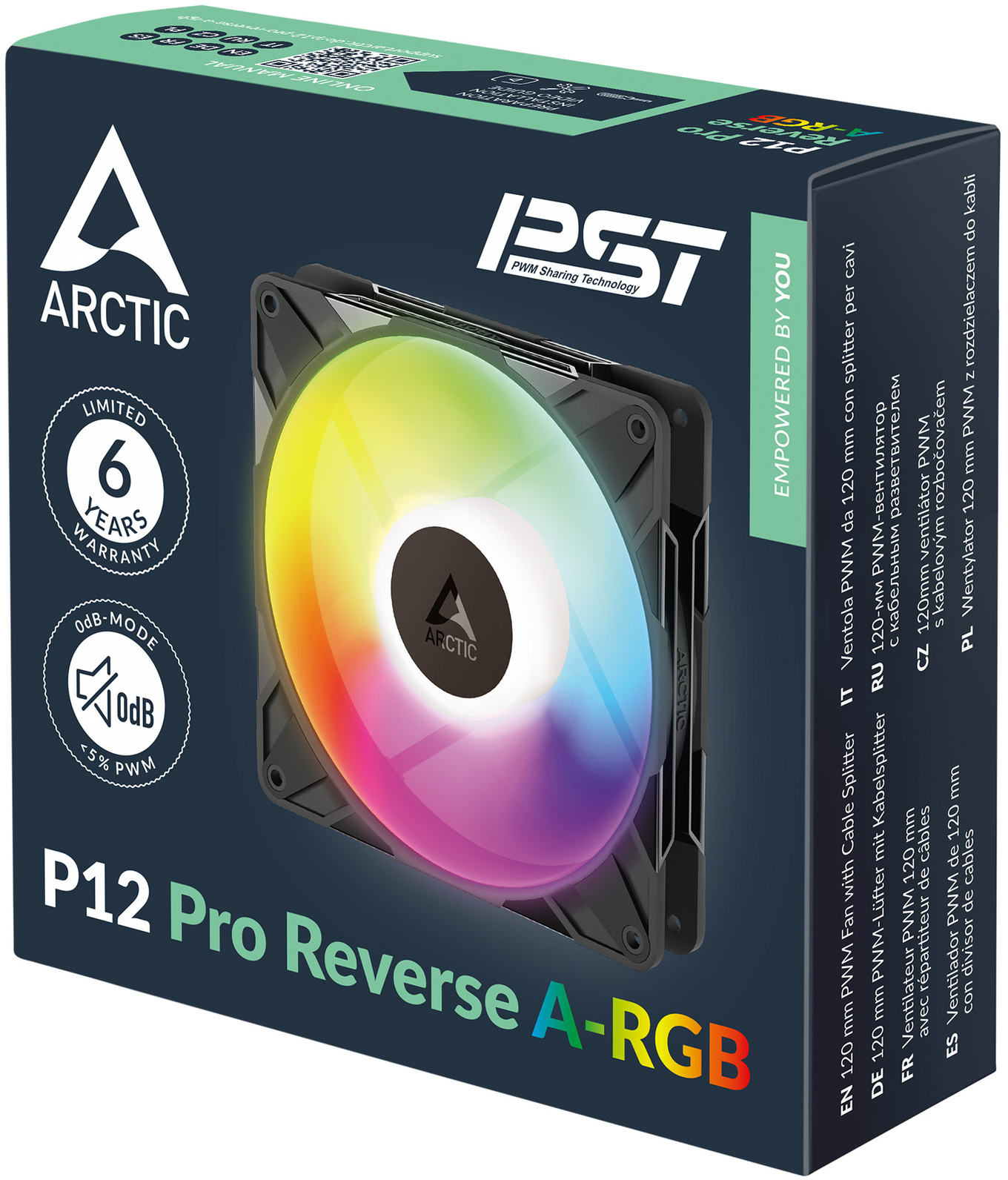 De ARCTIC Cooler P12 Pro Reverse A-RGB PWM is een hoogwaardige 120 mm ventilator voor in je computerbehuizing met dynamische verlichting en efficiënte koelcapaciteit. Dankzij PWM-ondersteuning regel je de snelheid van 500 tot 3000 RPM voor optimale balans tussen prestaties en geluidsniveau. Met een luchtstroom van 124 m³/u en statische druk van 4,5 mmH2O houdt deze ventilator je systeem koel onder belasting. Het duurzame vloeistofdynamische lager zorgt voor langdurige, stille werking. De multi-kleurige A-RGB verlichting creëert een visueel effect dat je systeem een persoonlijke touch geeft.