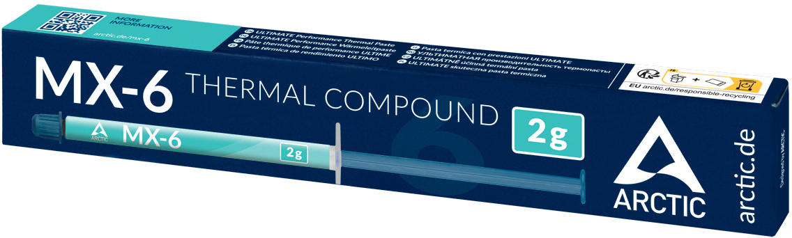 Met zijn nieuwe samenstelling is MX-6 de geschikte thermische verbinding voor vele toepassingsscenario's. Uitstekende niet-uitdrogende en niet-bloedende eigenschappen zorgen voor consistente prestaties op lange termijn. De viscositeit voorkomt lekkage door het Pump-Out Effect. Het is ook geschikt voor scenario's met directe koeling die zich bijvoorbeeld voordoen bij grafische kaarten of GPU's van consoleprocessors.