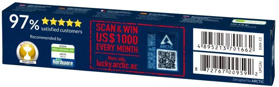 Bij Arctic hechten we veel waarde aan duurzaam gebruik van hulpbronnen. Daarom hebben we de verpakking van de MX-4 geoptimaliseerd om de CO2-uitstoot te verminderen. Door de productie van onze warmtegeleidende pasta in een nieuwe, praktische en recyclebare verpakking hebben we de milieu-impact met 40% weten te verminderen.