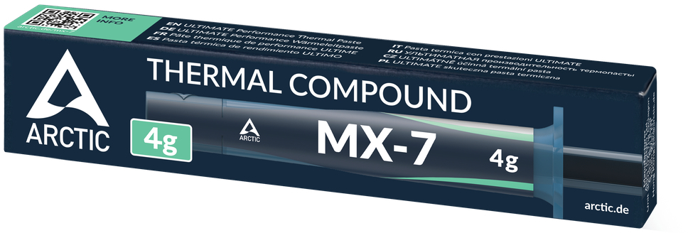 De ARCTIC MX-7 koelpasta is een betrouwbare thermische oplossing voor efficiënte warmteafvoer tussen processor en koellichaam. Deze koelpasta presteert stabiel binnen een breed temperatuurbereik van -50 tot 250 graden Celsius en is geschikt voor zowel CPU’s als GPU’s. Dankzij de hoge viscositeit laat de pasta zich nauwkeurig en gelijkmatig aanbrengen zonder uit te lopen. De elektrisch isolerende eigenschappen zorgen voor veilig gebruik. Ideaal voor nieuwe systemen, upgrades en periodiek onderhoud.