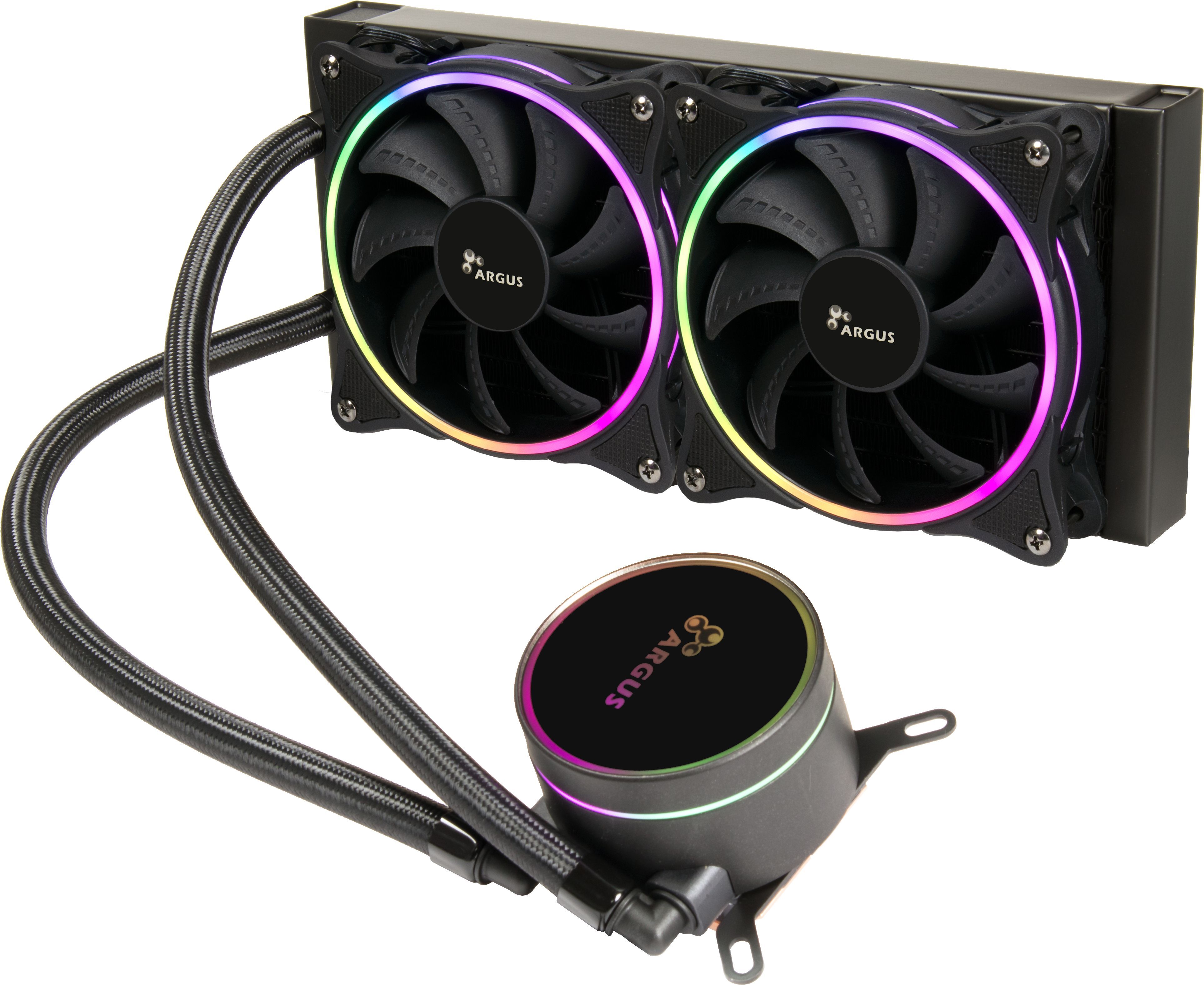 De ARGUS Iceman LC240 ARGB waterkoeler biedt een uitstekende koeling met twee 12 cm ventilatoren die snelheden tot 1800 RPM bereiken. Het systeem heeft een maximum luchtstroom van 79.83 CFM en een statische druk van 1.99 mm-H2O voor optimale prestaties. De koeler is geschikt voor zowel Intel als AMD sockets, ondersteunt TDP tot 250W en heeft een elegante aRGB verlichting. Het hydraulische lager zorgt voor stille werking, ideaal voor krachtige pc’s.