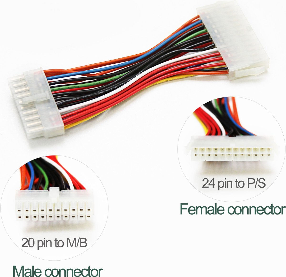 Indien u 24 pins voeding heeft en u wilt deze aansluiten op een 'oude' 20 pins moederbord, kunt u deze toch gebruiken dankzij deze 24-20 pins adapter.