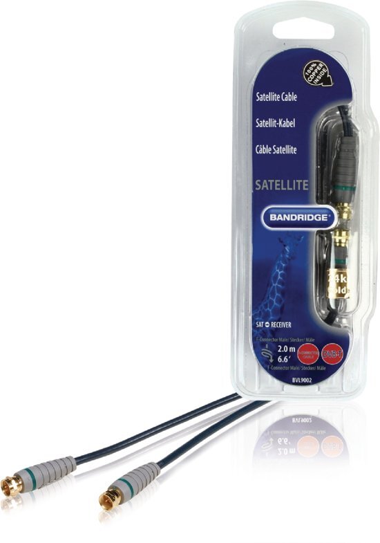 De Bandridge BVL9002 is een hoogwaardige satellietkabel van 2 meter, ontworpen voor optimale signaaloverdracht tussen je satellietontvanger en schotel. De kabel is voorzien van 24k vergulde connectoren voor minimale signaalverliezen en storingsvrije ontvangst. Dankzij de dubbele afscherming biedt deze kabel uitstekende bescherming tegen interferentie. Ideaal voor gebruik met digitale satellietsystemen. De stevige grijze mantel zorgt voor duurzaamheid en een nette afwerking.