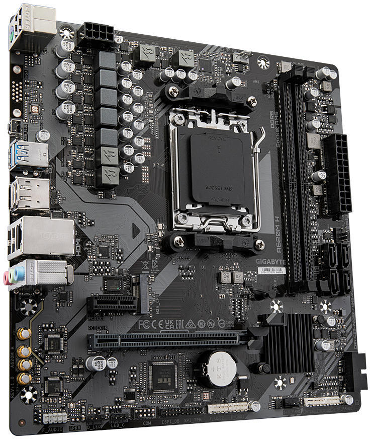 Het GIGABYTE A620M-H moederbord is een compacte Micro-ATX-oplossing met AMD AM5-socket en A620-chipset, ideaal voor Ryzen 7000 Series-processors. Het ondersteunt tot 96 GB DDR5-geheugen, heeft één PCIe 4.0 x16-slot en een M.2-slot voor snelle opslag. Dankzij HDMI, DisplayPort en USB 3.2 Gen 1 biedt het uitstekende connectiviteit. Perfect voor betaalbare, krachtige systemen zonder concessies op uitbreidbaarheid of prestaties.