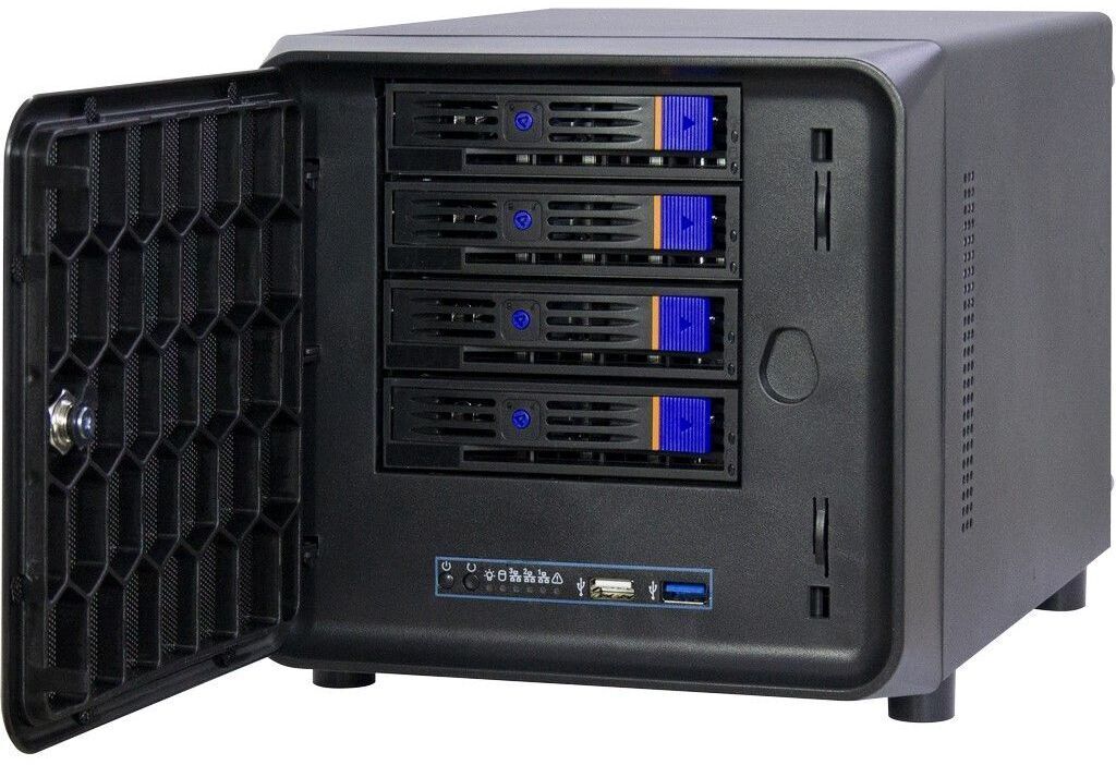 Er kan één Flex ATX- of 1U-servervoeding worden gemonteerd. De slotopening is geschikt voor de montage van een korte platte grafische kaart. Er kan ook één 2,5" harde schijf of één SSD worden gemonteerd. Eén afsluitbare deur maakt dit totaalpakket compleet.