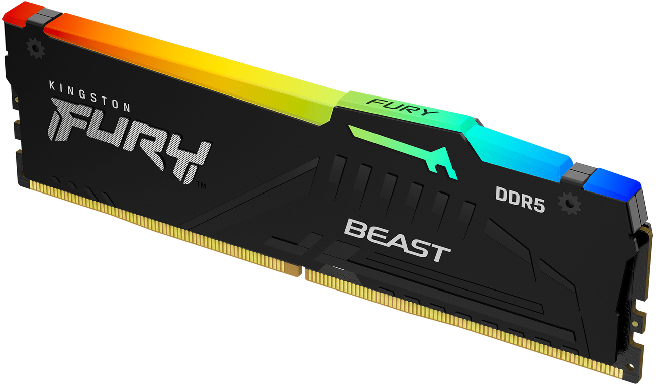 De Kingston Fury Beast DDR5-geheugenmodule van 16 GB levert hoge prestaties met een kloksnelheid van 5600 MHz en ondersteunt AMD EXPO-profielen voor geoptimaliseerd overklokken. Deze unbuffered 288-pin DIMM is ideaal voor gaming- en high-performance PC's. Met On-Die ECC-technologie, een lage spanning van 1.25 V en een stijlvolle RGB-backlight in rood, groen en blauw biedt deze module zowel snelheid als stijl. Dankzij de aluminium koelplaat blijft het geheugen koel tijdens intensief gebruik. Perfect voor gebruikers die topprestaties willen combineren met een strak design.