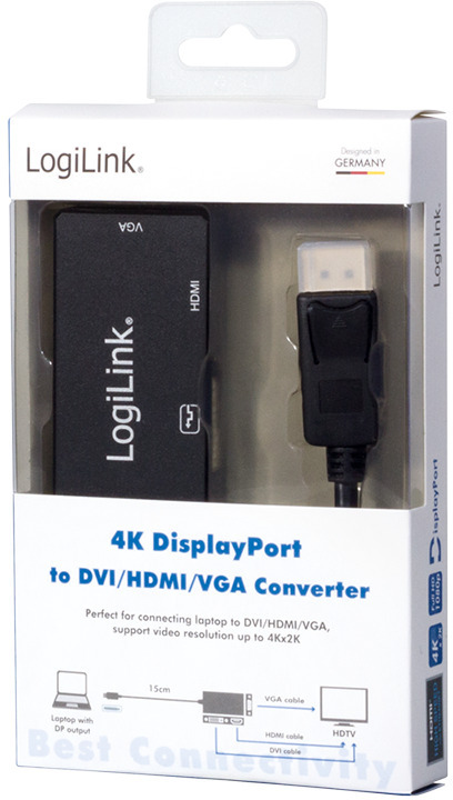 De LogiLink CV0109 DisplayPort to DVI/HDMI/VGA adapter biedt flexibele connectiviteit voor je digitale apparaten. Met ondersteuning voor HDMI, VGA en DVI-uitgang kan je deze adapter gebruiken om je DisplayPort-apparaten aan te sluiten op een breed scala aan displays en projectoren. De adapter ondersteunt resoluties tot 3840 x 2160 pixels en is uitgevoerd in een stijlvol zwart design.
