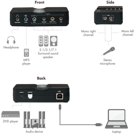 De LogiLink USB Sound Box 7.1 is een externe geluidskaart die via USB 2.0 eenvoudig aan je pc of laptop gekoppeld wordt. Met ondersteuning voor 7.1-kanaals audio biedt deze soundcard indrukwekkend surroundgeluid voor gaming, films of muziekproductie. De Sound Box beschikt over aansluitingen voor hoofdtelefoon, microfoon, line-in en S/PDIF in/uit. Ideaal voor gebruikers die hun geluidskwaliteit willen verbeteren zonder interne hardware te installeren.