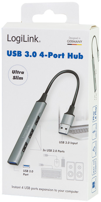 De LOGILINK UA0391 is een compacte, zilverkleurige USB 3.0 hub met 4 poorten, ontworpen voor eenvoudige uitbreiding van je apparaten. Dankzij de aluminium behuizing is hij duurzaam en stijlvol. De hub beschikt over één USB 3.2 Gen 1 Type-A poort voor snelle dataoverdracht en drie USB 2.0 Type-A poorten voor oudere apparaten. Hij werkt passief en krijgt voeding via de USB-verbinding, waardoor geen extra stroomadapter nodig is. Compatibel met Windows, Mac OS, Chrome OS, Android en Linux, ideaal voor veelzijdig gebruik.