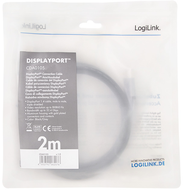 De LogiLink CDA0105 DisplayPort 1.4 kabel van 2 meter biedt een uitstekende verbinding voor apparaten met DisplayPort. Ondersteunt resoluties tot 8K bij 60Hz en zorgt voor hoge kwaliteit audio, inclusief Dolby Digital en DTS. Deze kabel biedt een snelle overdrachtssnelheid van 32,4 Gbit/s en ondersteunt geavanceerde functies zoals HDR en 3D. Verkrijgbaar in zwart en zilver, ideaal voor het aansluiten van monitors, projectoren of andere DisplayPort-apparaten.