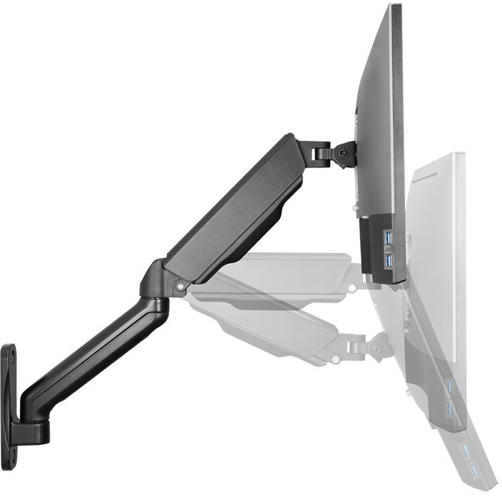 Bevestig uw monitor rechtstreeks aan de muur met de LogiLink-beugel. Dit betekent dat u uw scherm met volledige bewegingsvrijheid kunt gebruiken en naar wens kunt kantelen, draaien of draaien. Het ingebouwde gasveermechanisme zorgt voor soepele en flexibele positiewisselingen - voor meer ruimte en orde op uw bureau.