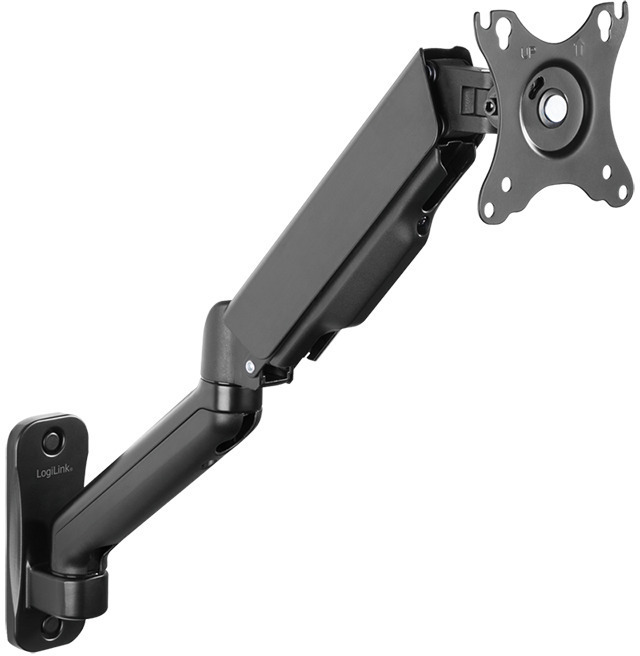 De LogiLink Wall Mount monitorbeugel is geschikt voor schermen van 17" tot 32" met een gewicht tot 9 kg. Dankzij het ingebouwde gasveermechanisme kunt u de monitor soepel kantelen, draaien en in hoogte verstellen. De beugel ondersteunt VESA 75x75 en 100x100 en heeft een wandafstand van 90 tot 540 mm. Ideaal voor wie ruimte wil besparen en flexibel wil werken met een optimale kijkhoek aan de muur.