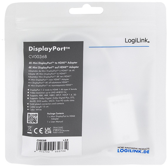 LOGILINK CV0036B - Adapter DisplayPort mini 1.2 <> HDMI