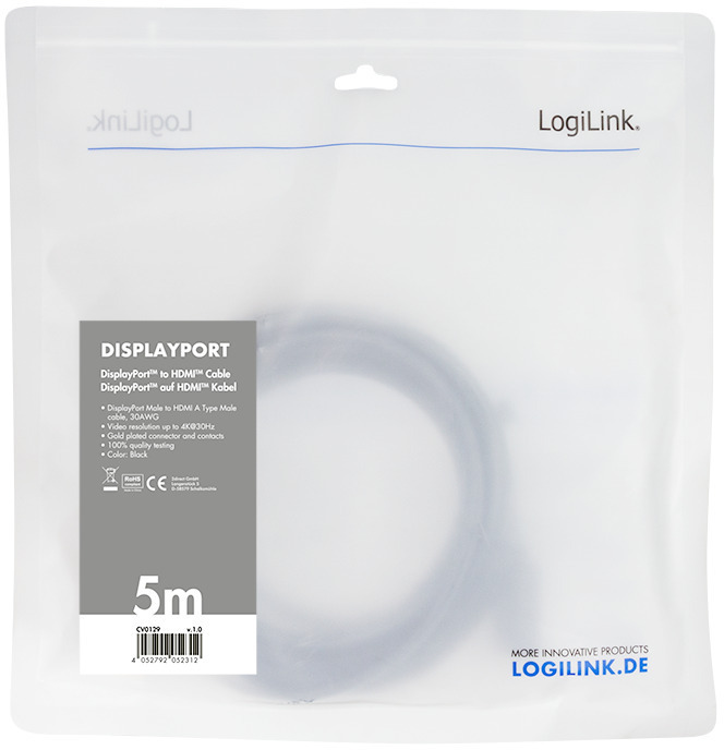 De DisplayPort-naar-HDMI-kabel van LogiLink is ideaal om uw computer op een HDMI-apparaat aan te sluiten. Het heeft vergulde contacten en een resolutie tot 4K x 2K.
