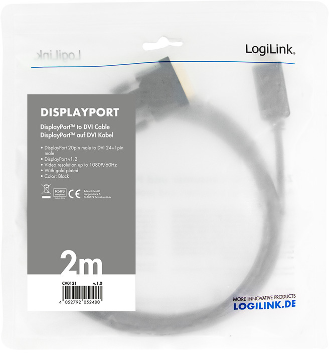 De LogiLink CV0131 is een 2 meter lange DisplayPort 1.2 naar DVI-D kabel, ontworpen voor het verbinden van DisplayPort-apparaten met DVI-schermen. Deze kabel ondersteunt Full HD-resoluties tot 1920 x 1080 bij 60 Hz en is voorzien van vergulde contacten voor optimale signaaloverdracht. Dankzij het slanke, zwarte ontwerp past hij moeiteloos in elke werk- of thuisomgeving. Ideaal voor uitbreiden of spiegelen van beeldschermen, videostreaming of presentaties.