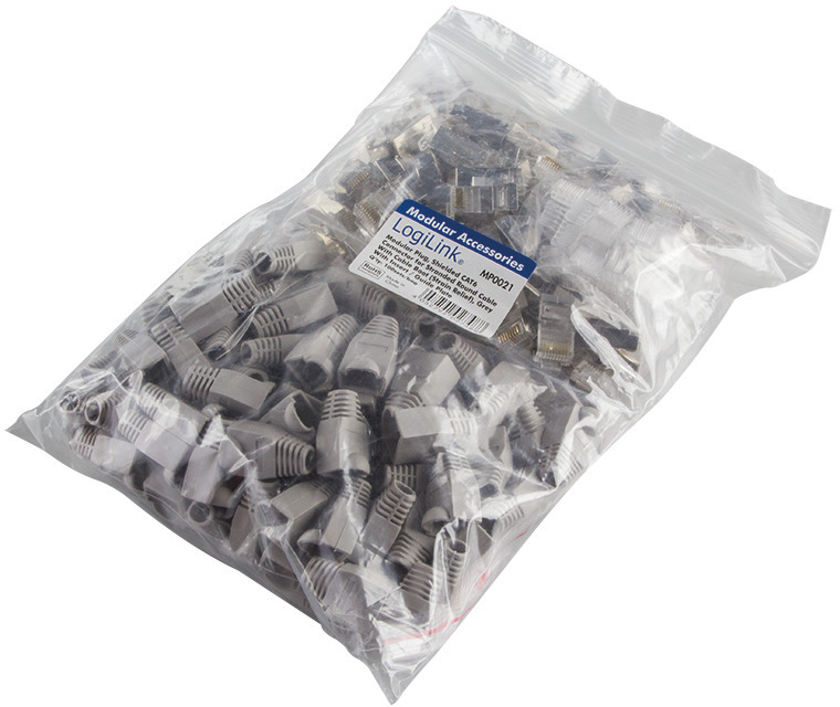 De modulaire connectoren of RJ45-stekkers van LogiLink worden gebruikt om twisted pair-netwerkkabels af te sluiten of patchkabels samen te stellen. RJ45 mannelijke modulaire connectoren worden pluggen genoemd, terwijl vrouwelijke connectoren aansluitingen zijn. LogiLink biedt een grote keuze aan modulaire stekkers en boots om de bekabeling perfect op maat te maken. Normaal gesproken bestaat één SKU uit 100 pluggen en 100 laarzen in een tas.