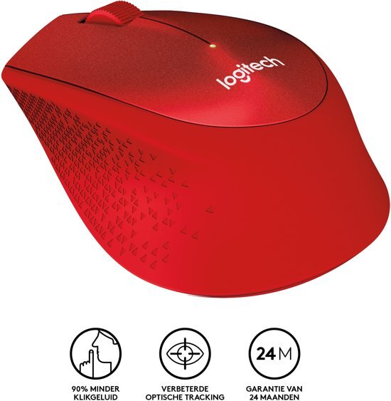 De Logitech M330 Silent Plus Rood is een draadloze muis ontworpen voor gebruik thuis en op kantoor. Voorzien van 2,4 GHz draadloze technologie en een USB-ontvanger, biedt deze muis een maximale resolutie van 1000 dpi. Met drie knoppen en een lichtgewicht ontwerp van 91 gram, is de M330 Silent Plus een comfortabele en stille oplossing voor dagelijks computergebruik.
