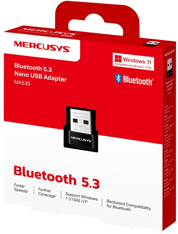 De MERCUSYS UB400 is een ultracompacte Bluetooth 5.3 adapter die eenvoudig in elke USB 2.0-poort past. Hiermee voeg je razendsnel draadloze Bluetooth-functionaliteit toe aan je pc of laptop. Dankzij het kleine formaat blijft de adapter vrijwel onopvallend in gebruik. Ideaal voor het verbinden van Bluetooth-apparaten zoals muizen, toetsenborden, headsets en meer. De UB400 is compatibel met Windows-systemen en heeft een strak zwart ontwerp.