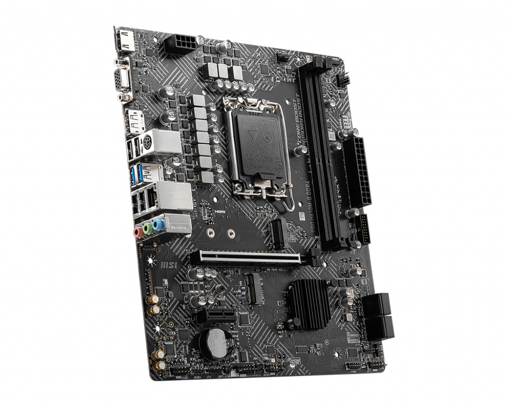 Het MSI PRO H610M-G DDR4 moederbord ondersteunt 12e generatie Intel Core-processoren en tot 64 GB DDR4-geheugen. Het heeft verschillende aansluitingen, waaronder HDMI 2.1, DisplayPort 1.4 en USB-poorten. Met een micro-ATX-formaat en Intel H610-chipset biedt het solide prestaties voor een budgetvriendelijke desktopconfiguratie.