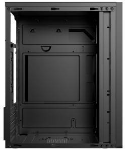 De POWER TRAIN IK240210B is een zwarte mini-toren behuizing geschikt voor Micro-ATX moederborden. Deze compacte PC-behuizing beschikt over 2x 3.5” en 2x 2.5” bays, 4 uitbreidingssloten en een voeding geplaatst bovenin. Er is geen zijraam of verlichting aanwezig, wat zorgt voor een strak design. De behuizing heeft 2 USB 3.2 Gen 1-poorten en AC97 audio-aansluitingen. Koeling is uitbreidbaar met ventilatoren aan de zijkant en achterkant.