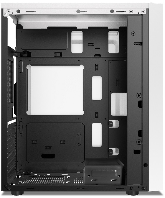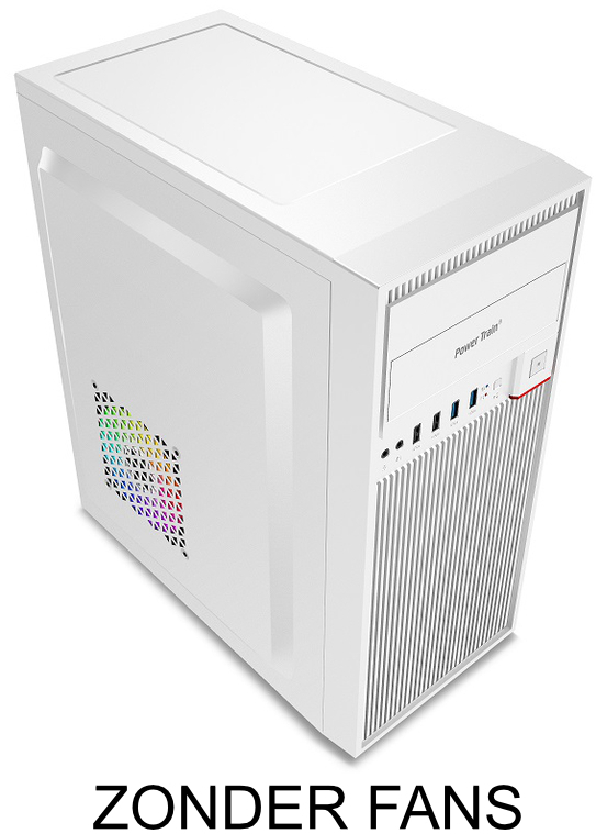De POWER TRAIN IK240610W is een witte midi-toren behuizing die ATX, Micro-ATX en Mini-ITX moederborden ondersteunt. Met 3x 3.5" en 4x 2.5" bays, 7 uitbreidingssloten en ruimte voor een CPU-koeler tot 15,8 cm en een grafische kaart tot 31 cm is hij zeer functioneel. Hij heeft 2 USB 2.0- en 2 USB 3.2 Gen 1-poorten, biedt mogelijkheden voor meerdere ventilatoren en heeft geen zijraam of verlichting.