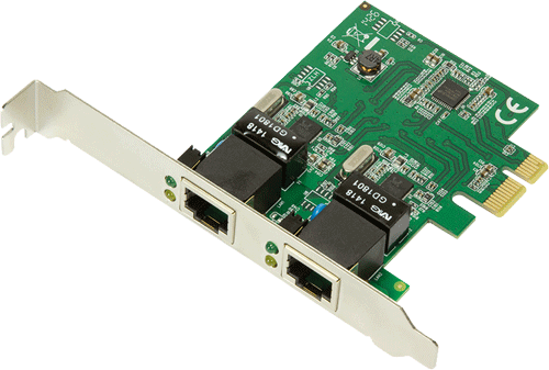 2x 10/100/1000 Mbit, Wake On Lan, PCI-Express
