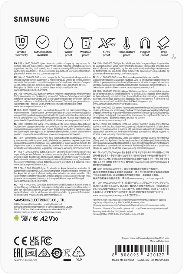 De Samsung EVO Plus microSD 256GB is een snelle en duurzame geheugenkaart, geschikt voor veeleisende toepassingen zoals 4K-video’s en hoge-resolutie foto’s. Met leessnelheden tot 160 MB/s en schrijfsnelheden tot 160 MB/s biedt deze microSDXC-kaart optimale prestaties voor smartphones, tablets en camera’s. De kaart is bestand tegen schokken, water, magneten en extreme temperaturen, waardoor je data veilig blijft. Inclusief SD-adapter voor veelzijdig gebruik.
