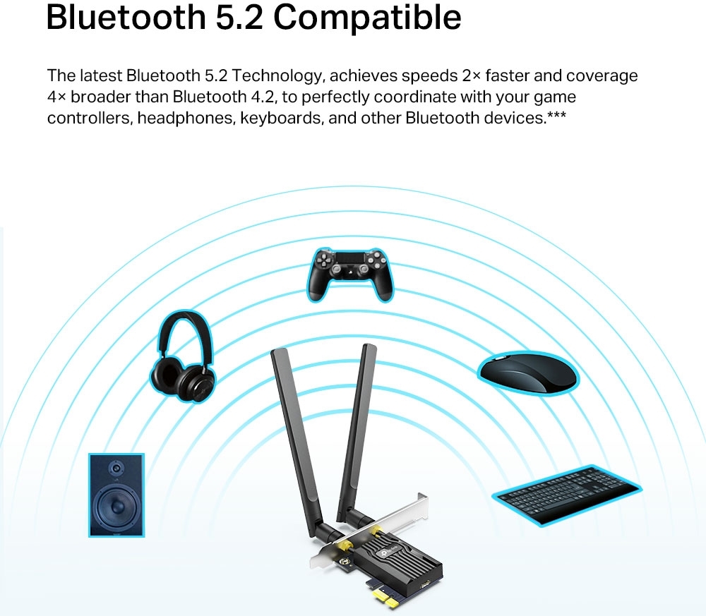 De TP-Link Archer TX20E is een krachtige PCI-E netwerkadapter met Wi-Fi 6 en Bluetooth 5.2. Met snelheden tot 1775 Mbit/s op dual-band 2.4 GHz en 5 GHz biedt deze kaart snelle en stabiele draadloze connectiviteit. De externe high-gain antennes zorgen voor een groot bereik, terwijl geavanceerde beveiliging zoals WPA3 en WPA2-PSK zorgt voor veilige verbindingen. Ideaal voor desktops die maximale prestaties en betrouwbaarheid vereisen.