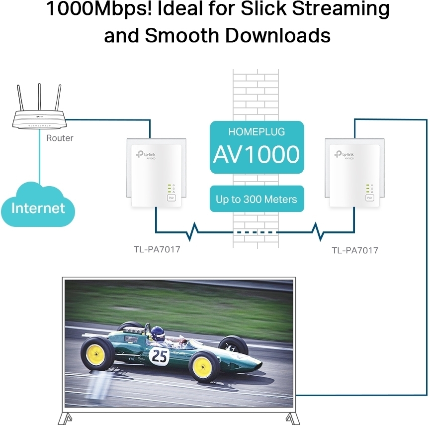 Plug and play stel het powerline-netwerk in en geniet direct van snelle, naadloze bedrade/draadloze verbindingen