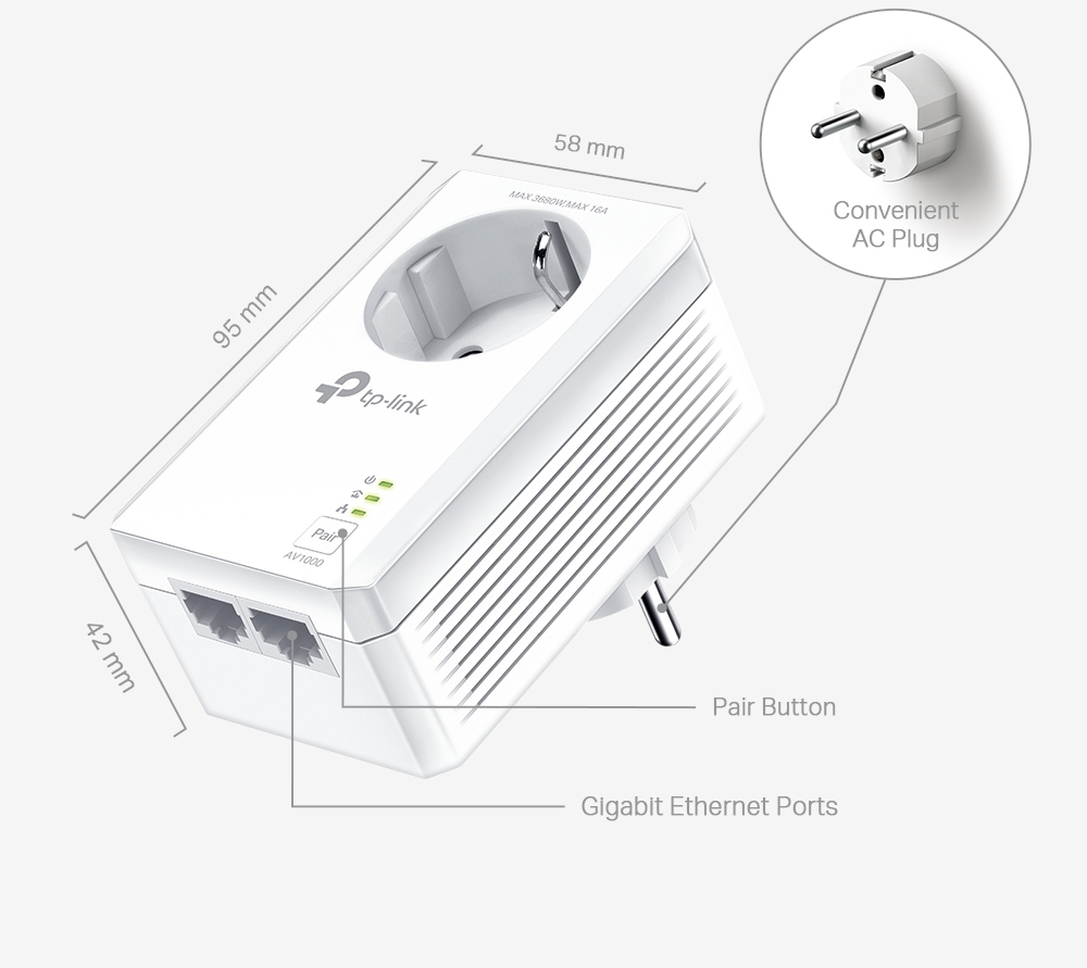 De TP-Link TL-PA7027P Powerline KIT bevat 2 adapters die een snel en betrouwbaar netwerk bieden via je stroomnetwerk. Met ondersteuning voor overdrachtssnelheden tot 1000 Mbps en twee Gigabit Ethernet-poorten, is het ideaal voor het verbinden van desktops, smart-tv's en gameconsoles. Dankzij de ingebouwde stopcontacten verlies je geen stroomvoorziening. De installatie is eenvoudig met plug-and-play, en de energiebesparingsmodus verlaagt het energieverbruik tot wel 85%, wat zorgt voor een efficiënte werking.