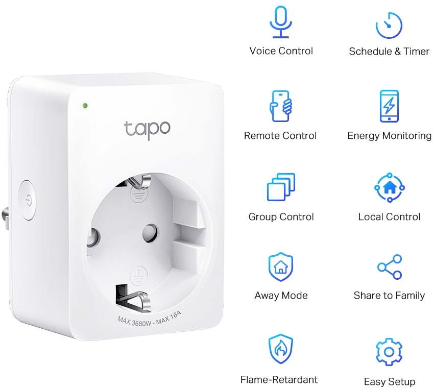 De TP-Link Tapo P100 is een slimme mini-wifi-stekker met energiebewaking. Via de Tapo-app kun je apparaten op afstand bedienen, tijdschema’s instellen en realtime energieverbruik volgen. Dankzij ondersteuning voor spraakbediening (Google Assistant/Alexa), afwezigheidsmodus en een compact ontwerp past hij in elk stopcontact zonder andere te blokkeren. Werkt op 2.4 GHz wifi zonder hub. Een ideale oplossing om eenvoudig controle te krijgen over je energieverbruik en slimme automatisering in huis.