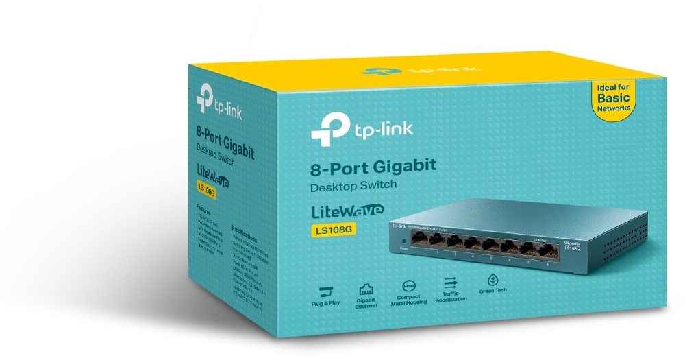 De TP-LINK TL-LS108G is een unmanaged switch met 8 10/100/1000Mbps poorten en ondersteunt Auto-MDI/MDIX voor eenvoudige aansluiting van netwerkapparaten. De switch heeft een robuuste metalen behuizing, geschikt voor zowel desktop- als wandmontage. Met groene ethernettechnologie bespaart de switch energie en zorgt IEEE 802.3X stroomregeling voor een betrouwbare gegevensoverdracht. Plug-and-play functionaliteit maakt installatie eenvoudig zonder configuratie.