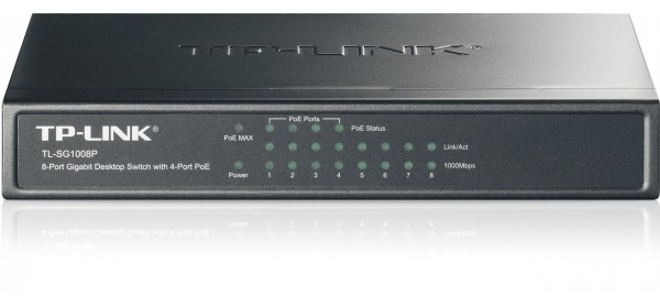 De TP-Link TL-SG1008P is een unmanaged switch met 8 poorten (10/100/1000 Mbps), waarvan 4 PoE-poorten voor het overdragen van zowel gegevens als stroom via één kabel. Met een switchingcapaciteit van 16 Gbit/s en ondersteuning voor PoE-vermogen tot 55 W is deze switch ideaal voor het uitbreiden van thuis- en kantoornetwerken. Het apparaat vereist geen configuratie en biedt betrouwbare prestaties voor latentiegevoelig verkeer dankzij 802.1p/DSCP QoS.