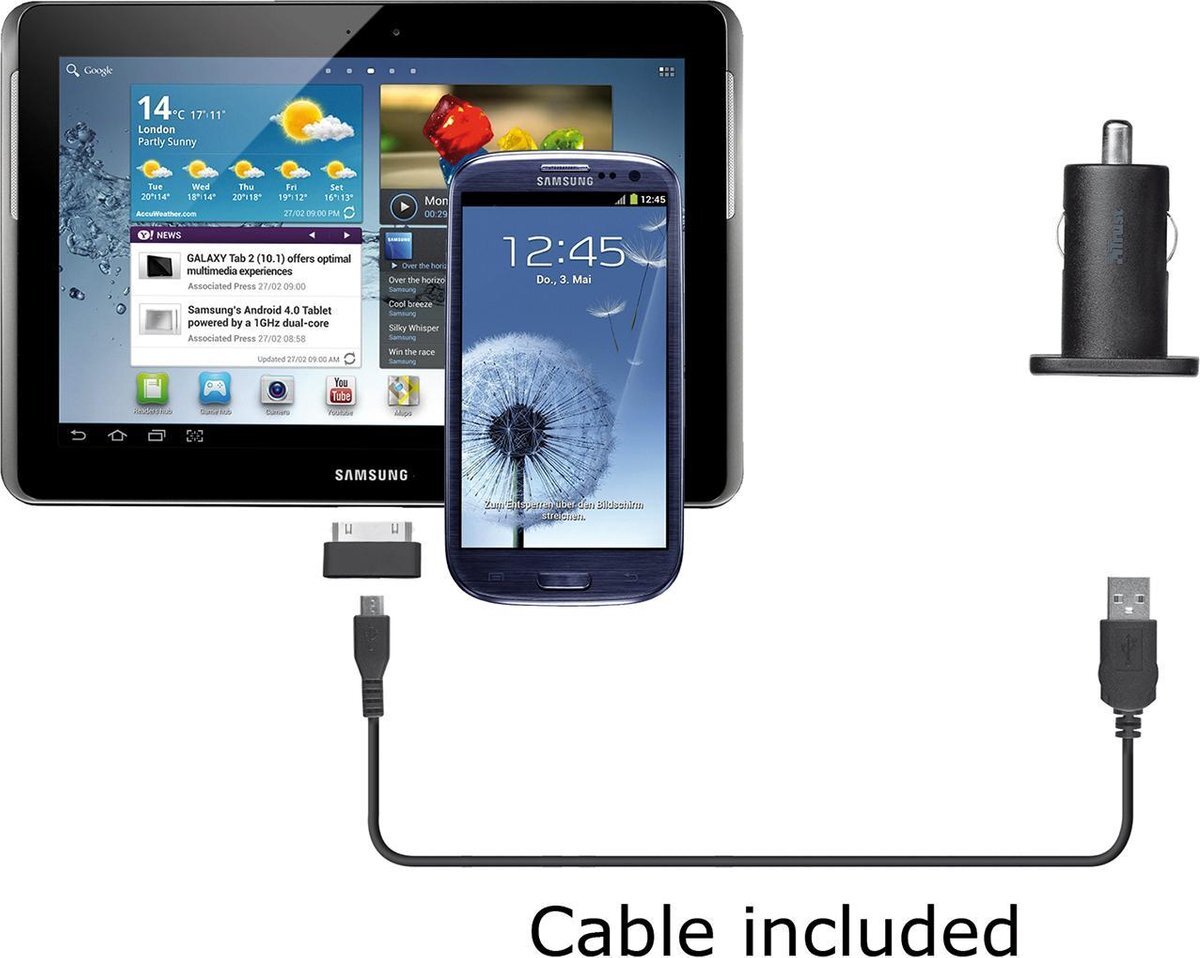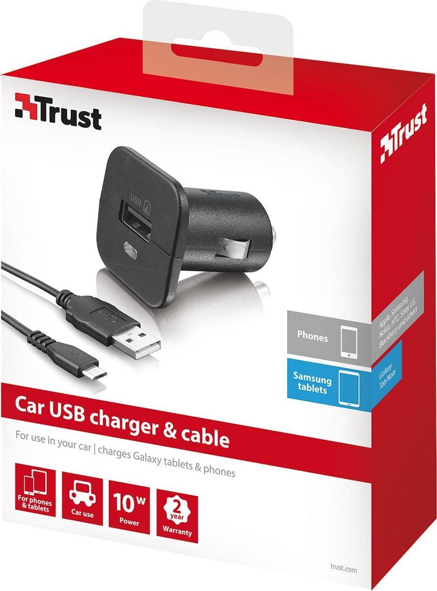 TRUST Plug&Go Auto oplader zwart voor mobiele apparatuur