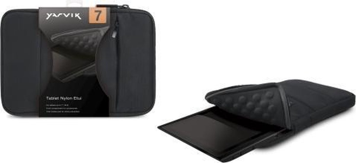 De YARVIK opbergtas is een zwart nylon etui, speciaal ontworpen voor 7'' tablets. Deze tablet sleeve biedt bescherming voor zowel de voor- als achterkant van je apparaat. Gemaakt van duurzaam kunststof materiaal, biedt het etui een eenvoudige, maar effectieve manier om je tablet veilig op te bergen en te beschermen tegen krassen en stoten. Het etui heeft geen opdruk, wat zorgt voor een strakke en minimalistische uitstraling.